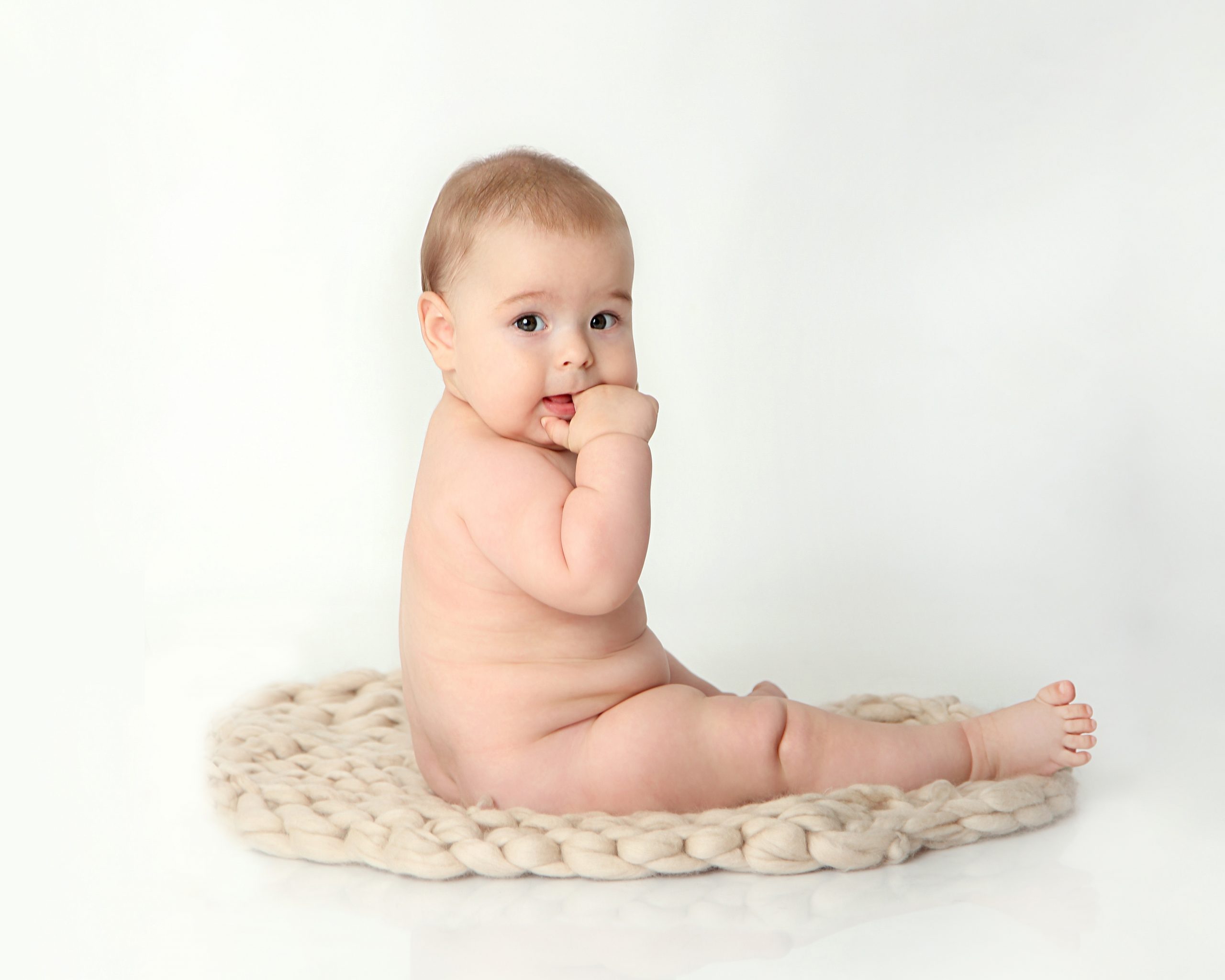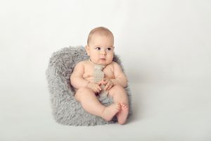 Six months is also the time when parents often begin to see their baby’s looks start to change. They have moved out of the “newborn stage” and may have more hair to pull into a little sprout or clip back. A tooth or two may also have started to appear and your child may have discovered and begun to explore their adorable little feet. Is there anything cuter than a baby nibbling on their tiny toes? While sitting up is the focus of the six month milestone session, these are also details that we will be sure to capture. Plan to schedule this photography session when your baby is sitting up for a few minutes at a time without assistance.